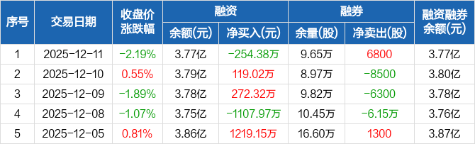 哈药股份:融资净偿还254.38万元,融资余额3.77亿元(12-11)