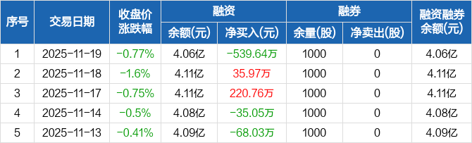 尖峰集团:融资净偿还539.64万元,融资余额4.06亿元(11-19)