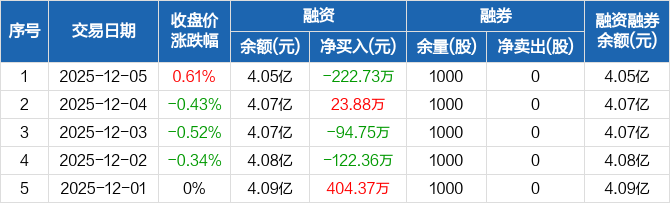 尖峰集团:融资净偿还222.73万元,融资余额4.05亿元(12-05)