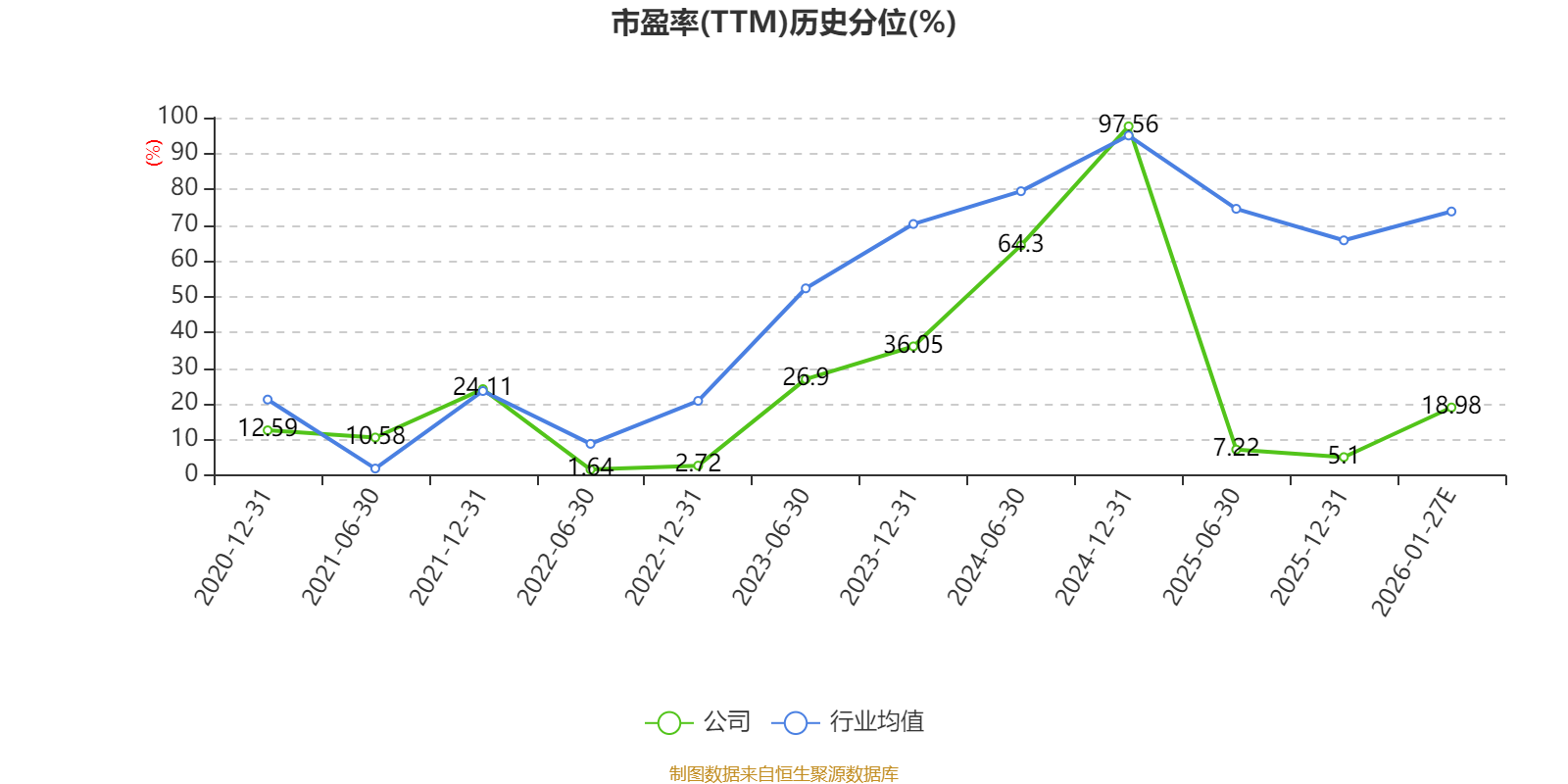 以本次披露业绩预告均值计算,公司近年市盈率(TTM)图如下所示: