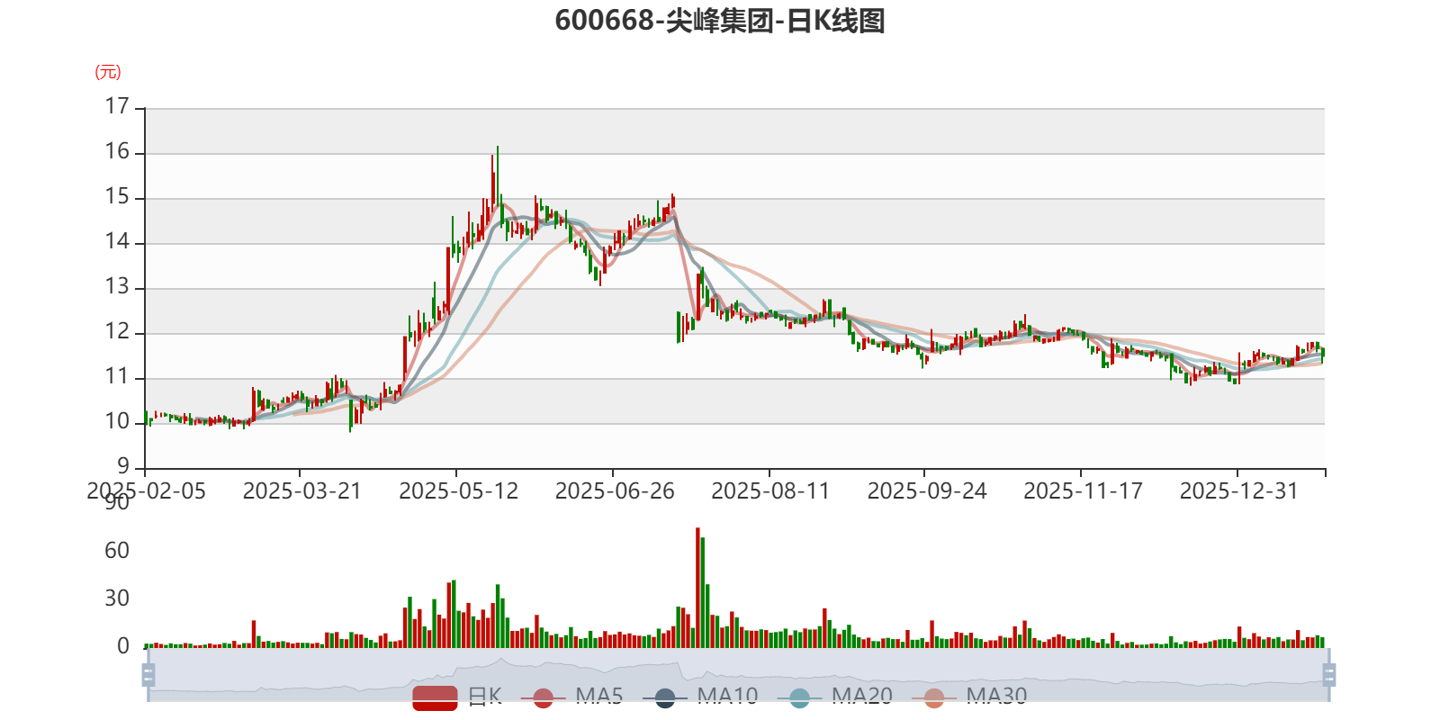 中证智能财讯尖峰集团(600668)1月27日晚间披露2025年度业绩预告,预计2025年归母净利润4.6亿元,同比增长325.97%;扣非净利润亏损2.15亿元,上年同期盈利9661.77万元。以1月27日收盘价计算,尖峰集团目前市盈率(TTM)约为10.31倍,市净率(LF)约0.82倍,市销率(TTM)约1.71倍。