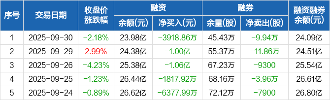 东阳光:连续5日融资净偿还累计3.28亿元(09-30)