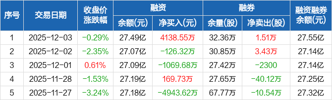 东阳光:融资净买入4138.55万元,融资余额27.49亿元(12-03)
