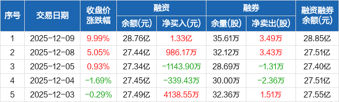 东阳光:融资余额28.76亿元,创历史新高(12-09)