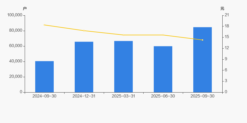 2024年9月30日至今,公司股东户数成倍增长,区间涨幅达109.08%。2024年9月30日至2025年9月30日区间股价下降22.32%。