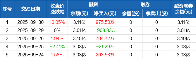 交运股份:融资余额3.11亿元,创历史新高(09-30)