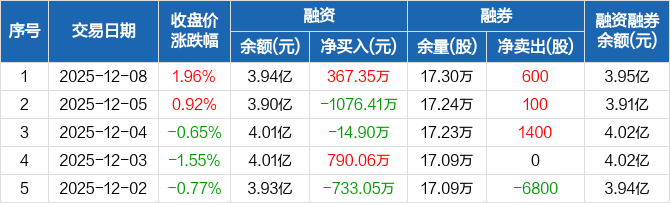 南京新百:融资净买入367.35万元,融资余额3.94亿元(12-08)