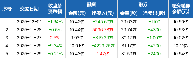 中船防务:融资净偿还245.69万元,融资余额10.42亿元(12-01)