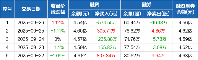 上海石化:融资净偿还574.55万元,融资余额4.54亿元(09-26)