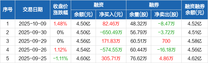 上海石化:融资净买入82.46万元,融资余额4.5亿元(10-09)