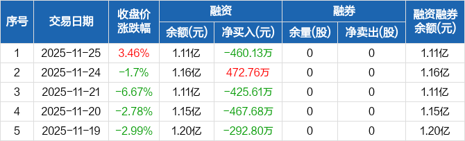 潞化科技:融资净偿还460.13万元,融资余额1.11亿元(11-25)