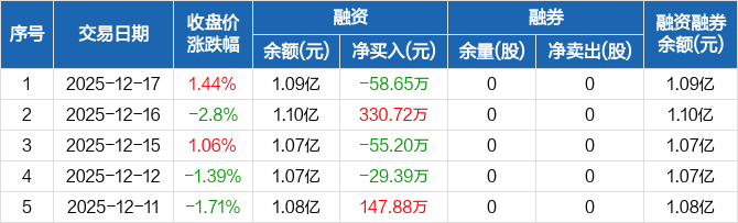 潞化科技:融资净偿还58.65万元,融资余额1.09亿元(12-17)