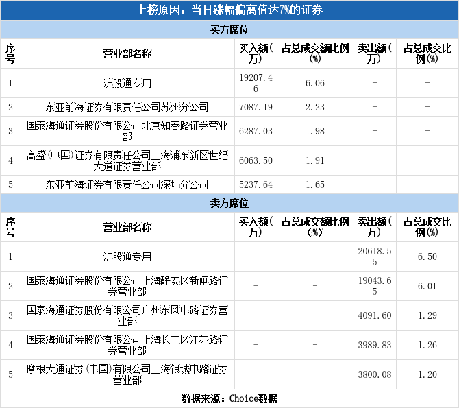 沪股通现身龙虎榜,东百集团涨停(12-11)