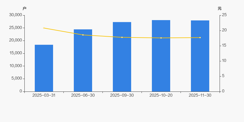 2025年3月31日至今,公司股东户数显著大幅增长,区间涨幅达52.11%。2025年3月31日至2025年11月30日区间股价下降15.03%。