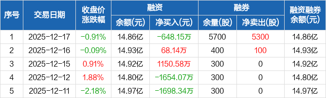 舍得酒业:融资净偿还648.15万元,融资余额14.86亿元(12-17)