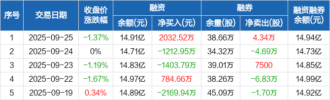 物产中大:融资净买入2032.52万元,融资余额14.91亿元(09-25)