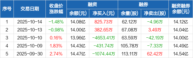 物产中大:融资净买入825.73万元,融资余额14.08亿元(10-14)