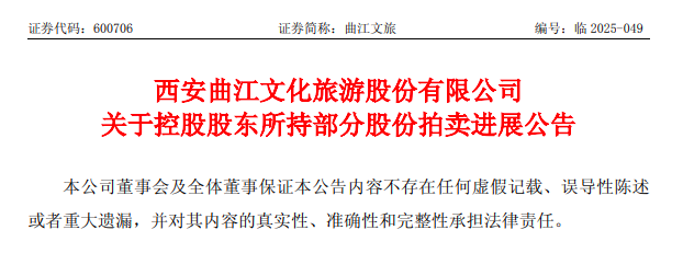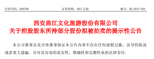 曲江文旅表示,该事项不会影响公司生产经营,也不会导致控股股东及实控人变更。目前控股股东正积极推动解决方案。