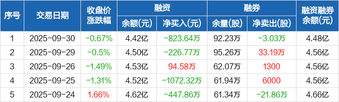 彩虹股份:融资净偿还823.64万元,融资余额4.42亿元(09-30)