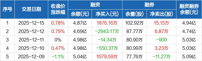 彩虹股份:融资净买入1876.16万元,融资余额4.87亿元(12-15)