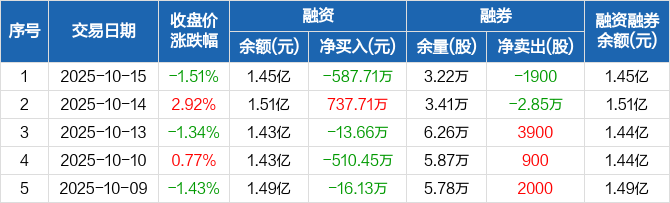苏美达:融资净偿还587.71万元,融资余额1.45亿元(10-15)