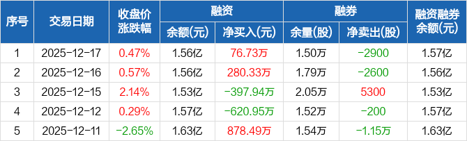 苏美达:融资净买入76.73万元,融资余额1.56亿元(12-17)