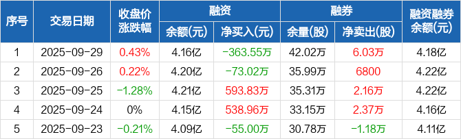 天津港:融资净偿还363.55万元,融资余额4.16亿元(09-29)