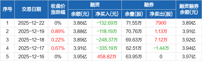 天津港:连续4日融资净偿还累计834.43万元(12-22)