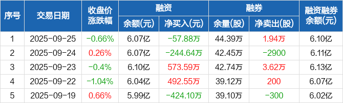 中交设计:融资净偿还57.88万元,融资余额6.07亿元(09-25)