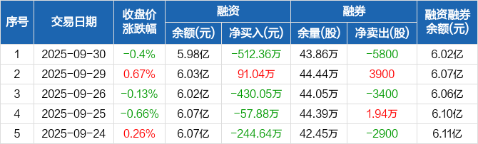 中交设计:融资净偿还512.36万元,融资余额5.98亿元(09-30)