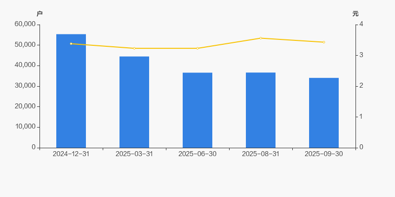 截至2025年9月30日,公司最新总股本为12.32亿股,且均为流通股。户均持有流通股数量由上期的3.36万股上升至3.62万股,户均流通市值12.42万元。