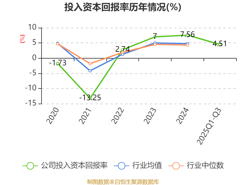 盈利能力方面, 2025年前三季度公司加权平均净资产收益率为6.83%,同比下降5.16个百分点。公司2025年前三季度投入资本回报率为4.51%,较上年同期下降3.76个百分点。