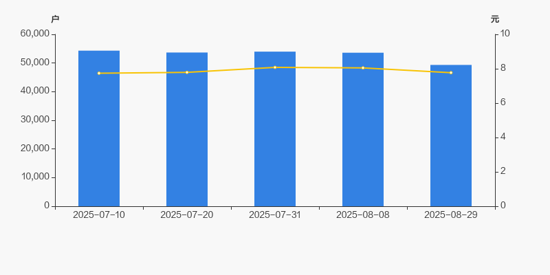 2025年7月10日至今,公司股东户数有所下降,区间跌幅为9.17%。2025年7月10日至2025年8月29日区间股价上涨0.39%。