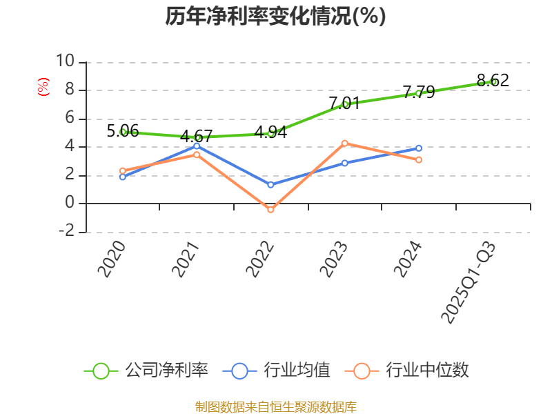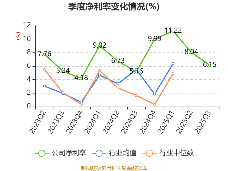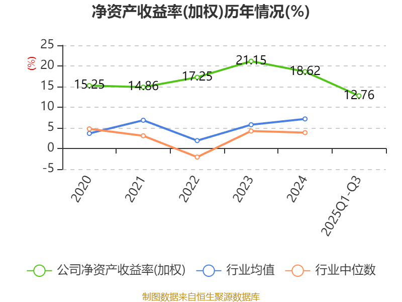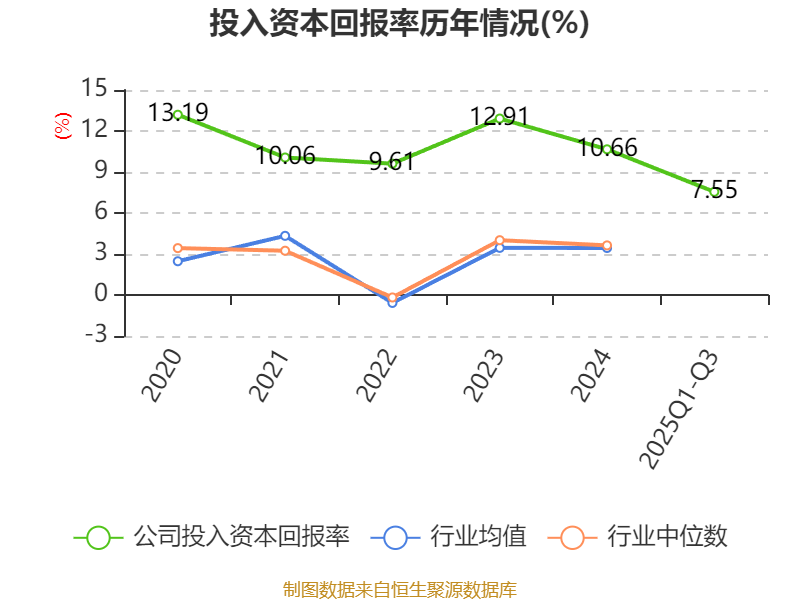 盈利能力方面, 2025年前三季度公司加权平均净资产收益率为12.76%,同比下降0.51个百分点。公司2025年前三季度投入资本回报率为7.55%,较上年同期上升0.04个百分点。