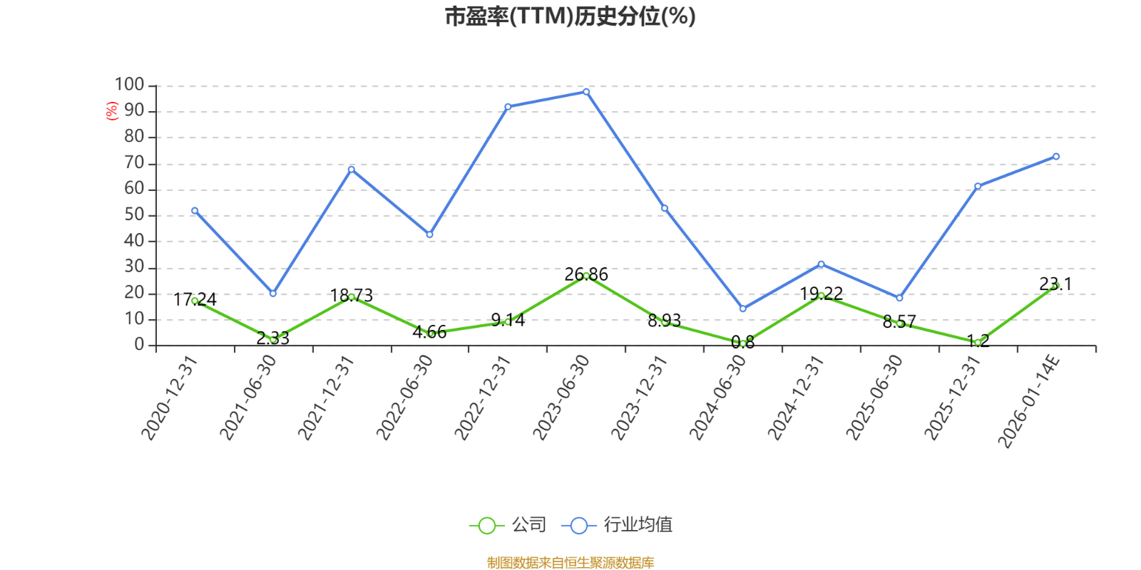 以本次披露业绩快报数据计算,公司近年市盈率(TTM)图如下所示: