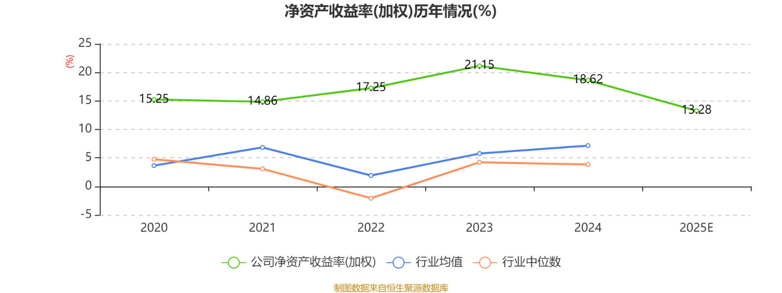 数据显示,2025年公司加权平均净资产收益率为13.28%,较上年同期下降5.34个百分点。