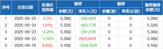 中国高科:连续3日融资净偿还累计1114.27万元(09-25)