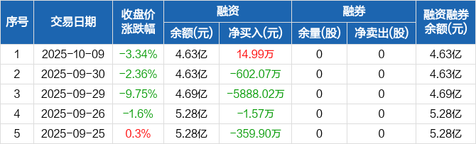 中国高科:融资净买入14.99万元,融资余额4.63亿元(10-09)