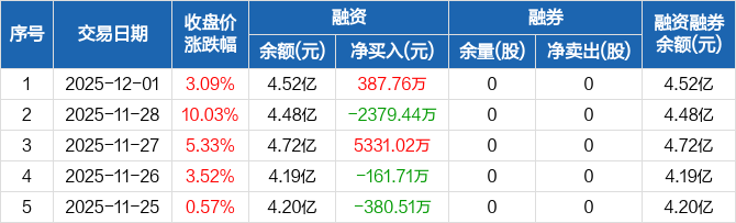 中国高科:融资净买入387.76万元,融资余额4.52亿元(12-01)