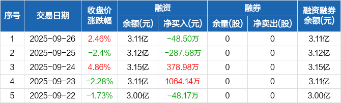苏州高新:融资净偿还48.5万元,融资余额3.11亿元(09-26)