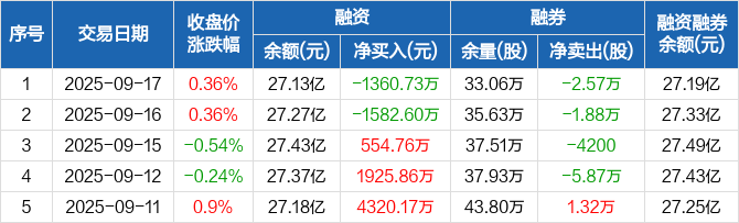 中粮糖业:融资净偿还1360.73万元,融资余额27.13亿元(09-17)