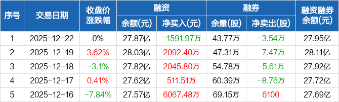 中粮糖业:融资净偿还1591.97万元,融资余额27.87亿元(12-22)