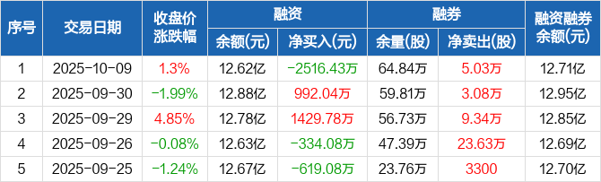辽宁成大:融资净偿还2516.43万元,融资余额12.62亿元(10-09)
