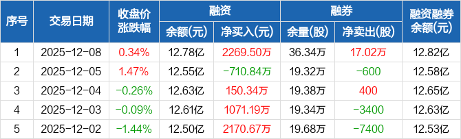 辽宁成大:融资净买入2269.5万元,融资余额12.78亿元(12-08)