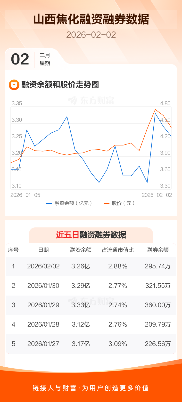 交易所最新数据显示,山西焦化于2026年2月2日获融资买入5438.17万元,融资偿还5760.88万元,当日融资净偿还322.71万元。目前,该股融资余额3.26亿,占流通市值比例为2.88%。