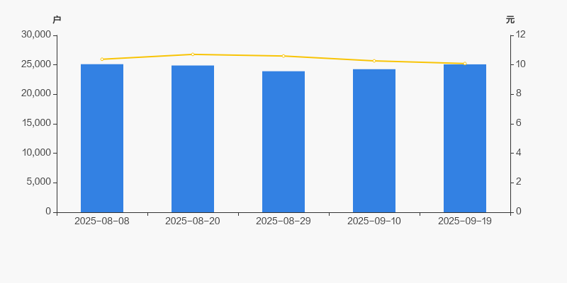 2025年8月8日至今,公司股东户数有所下降,区间跌幅为0.10%。2025年8月8日至2025年9月19日区间股价下降2.79%。