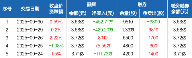 富维股份:融资净偿还452.71万元,融资余额3.63亿元(09-30)