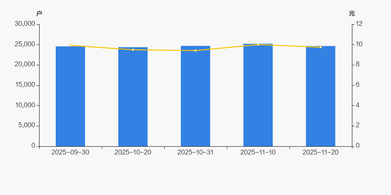 2025年9月30日至今,公司股东户数有所增长,区间涨幅为0.31%。2025年9月30日至2025年11月20日区间股价下降1.86%。