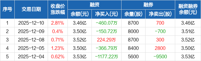 富维股份:融资净偿还460.07万元,融资余额3.46亿元(12-10)