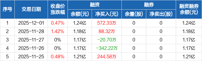 华远控股:融资净买入572.33万元,融资余额1.24亿元(12-01)